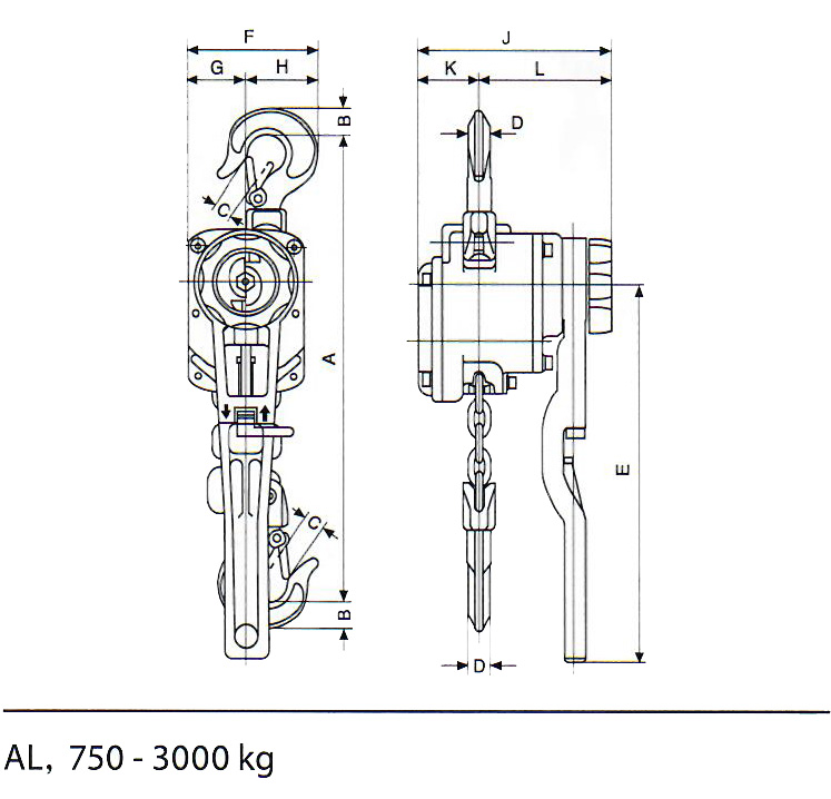| yaleAL铝制手扳葫芦外形尺寸 |