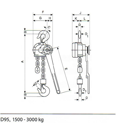 | yale D95手扳葫芦外形尺寸 |