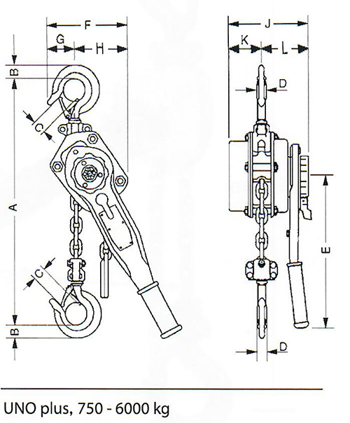 | yaleUNO plus手扳葫芦外形尺寸 |