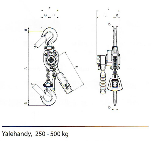 | Yalehandy手扳葫芦外形尺寸 |